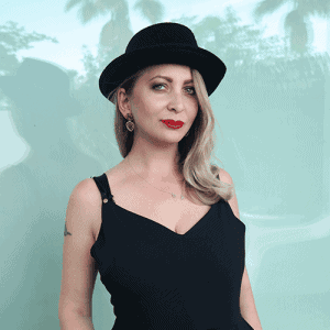 Een designer uit Berlijn. Haar show was genoemd "The Middel" en alles draaide om het midden. Mix tussen darkness en lichtaardenest….nostalgisch. Zo zag de runway eruit als een weg. En je kon ook in de collectie veel strepen zien, het haar was geïnspireerd door de snelweg. Raar toch? Zo hebben we strakke looks gecreëerd die samen in het midden bij elkaar kwamen. We hebben expres zichtbare elastiekjes gelaten zodat het op de strepen van de weg lijkt. Mijn favoriete haar look <3